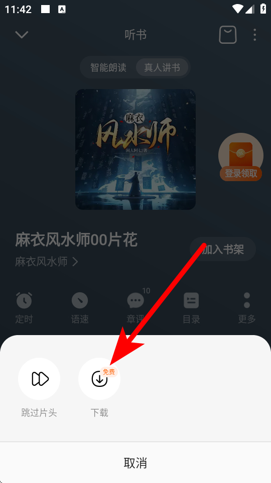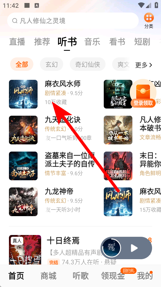 2、在聽(tīng)書(shū)頁(yè)面,點(diǎn)擊想要下載的小說(shuō),進(jìn)入小說(shuō)詳情界面。