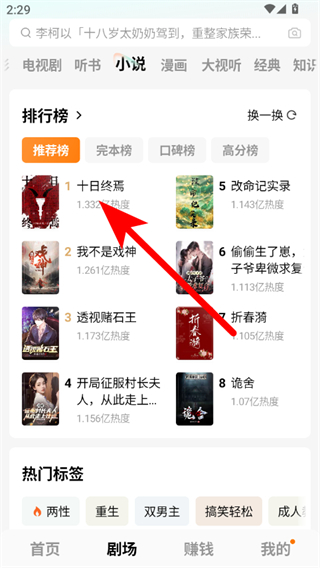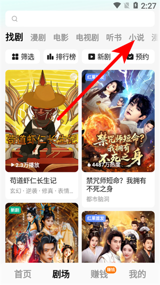 1、在紅果劇場頁面,點擊小說分類,進入小說列表頁面。
