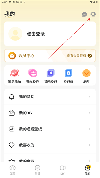 1、啟動(dòng)聯(lián)通視頻彩鈴APP,點(diǎn)擊導(dǎo)航欄中DIY的圖標(biāo)。