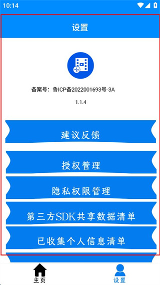 4、進(jìn)入設(shè)置頁,可查看建議反饋、授權(quán)管理等多項(xiàng)設(shè)置內(nèi)容。