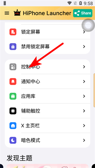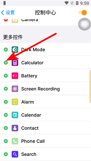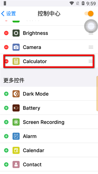 4、添加后應(yīng)用會(huì)出現(xiàn)在控制中心列表,即可完成蘋果主題控制中心應(yīng)用添加。