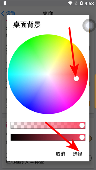 4、在桌面背景選擇界面,選擇喜歡的顏色后點(diǎn)擊選擇,即可完成桌面背景更換。