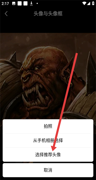 3、在頭像選擇菜單中點(diǎn)擊“選擇推薦頭像”,進(jìn)入選擇推薦頭像頁(yè)面。