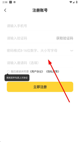 4、在頁面依次輸入手機號、驗證碼,設(shè)置密碼,勾選同意用戶協(xié)議,點擊立即注冊完成賬號注冊。