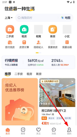 1、打開我愛我家,點擊底部導(dǎo)航欄最右側(cè)的我的。