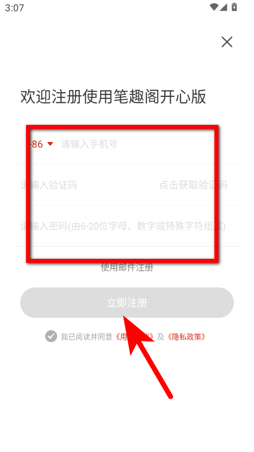 4、在注冊(cè)頁(yè)面,輸入信息,勾選協(xié)議點(diǎn)擊立即注冊(cè)按鈕,即可完成賬號(hào)注冊(cè)操作。