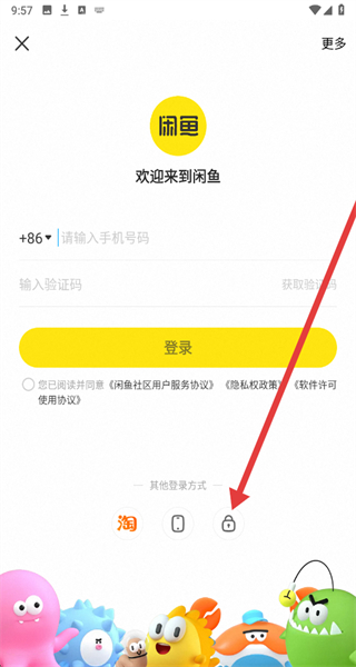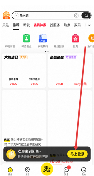 1、在閑魚APP首頁點擊“馬上登錄”,進入登錄選擇頁面。