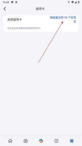 3、進(jìn)入選項卡設(shè)置頁面后,點(diǎn)擊關(guān)閉選項卡選項。