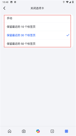 4、在關(guān)閉選項卡頁面中,可選擇任意一項,即可完成標(biāo)簽頁設(shè)置。