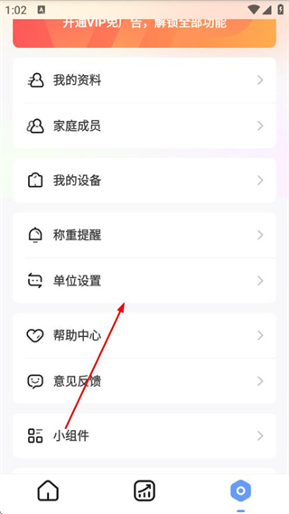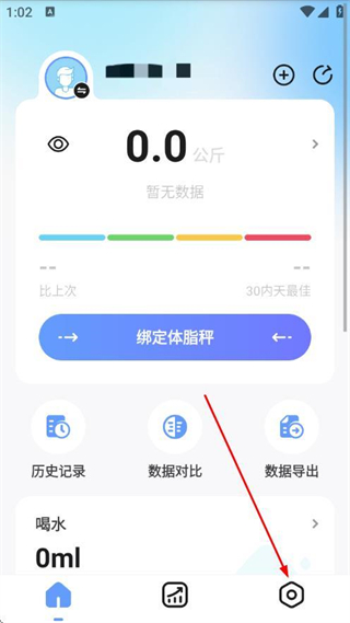 1、打開OKOK體脂秤APP,點擊底部導(dǎo)航欄的設(shè)置圖標。