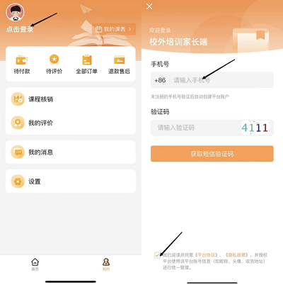 2、打開軟件之后,在“我的”頁面→“點(diǎn)擊登錄”→“手機(jī)驗(yàn)證碼登錄”→“閱讀、同意和勾選《用戶協(xié)議》和《隱私政策》”→點(diǎn)擊“登錄”;