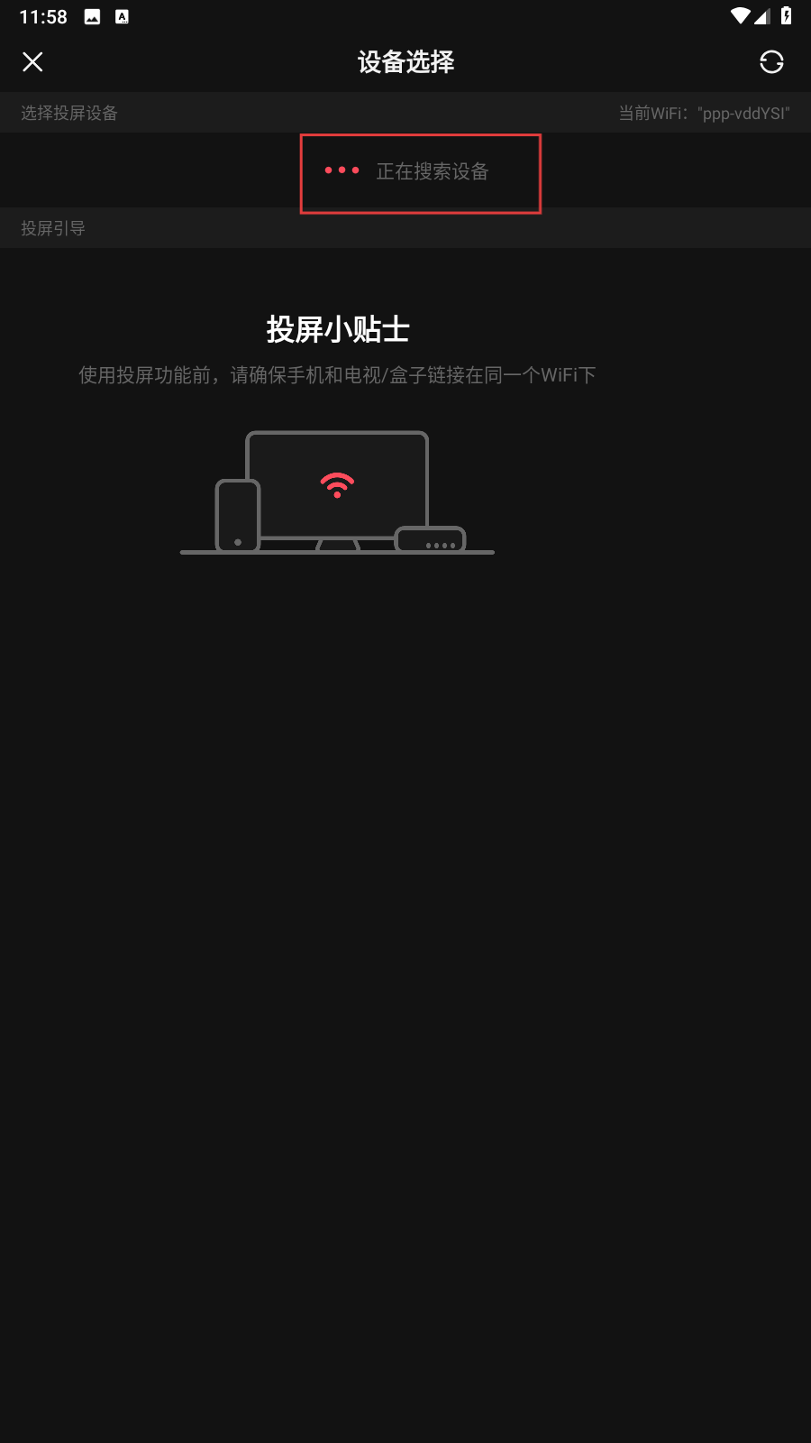 4、在設(shè)備選擇的頁面內(nèi),確保與設(shè)備連接同一wifi,過程中需要耐心等待。