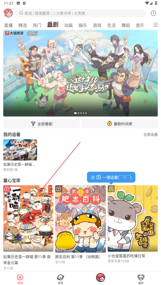 1、啟動acfun的應(yīng)用軟件,在首頁正上方點(diǎn)擊番劇進(jìn)行切換。