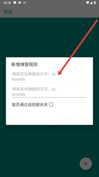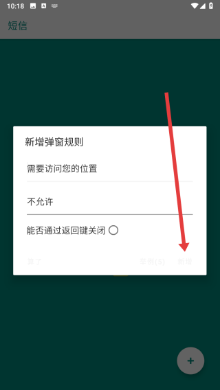 4、在填寫好規(guī)則后,點(diǎn)擊箭頭指向處的新增按鈕,新增該彈窗規(guī)則。