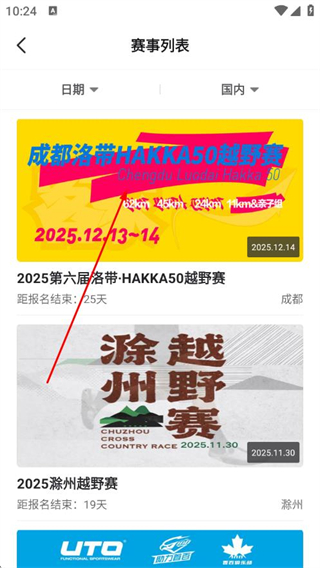 2、在賽事列表中選擇要報(bào)名的賽事,如2025第六屆洛帶·HAKKA50越野賽。