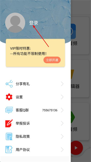2、在側(cè)邊欄,點(diǎn)擊“登錄”區(qū)域,進(jìn)入登錄界面。