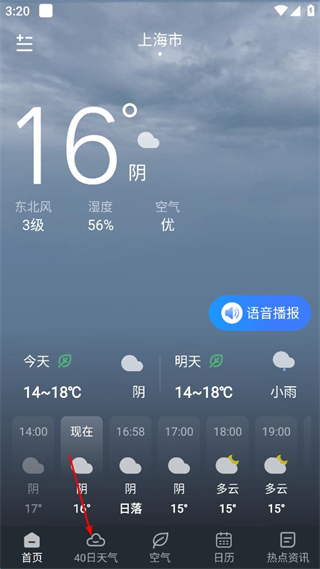 2、進(jìn)入上海市天氣頁面后,點(diǎn)擊下方40日天氣選項(xiàng),查看上海40日天氣日歷。