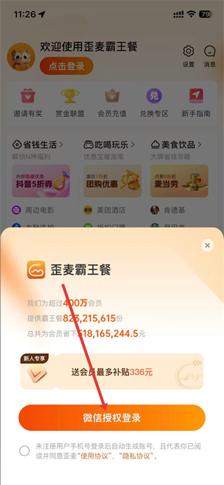 3、在彈出的登錄方式選擇頁面,點擊微信授權(quán)登錄。
