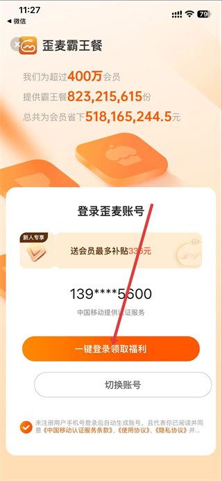 4、點擊一鍵登錄領(lǐng)取福利按鈕,即可完成賬號登錄。