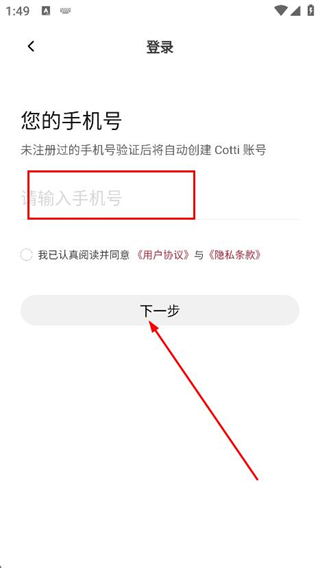 2、在登錄頁面,輸入手機號,點擊下一步。