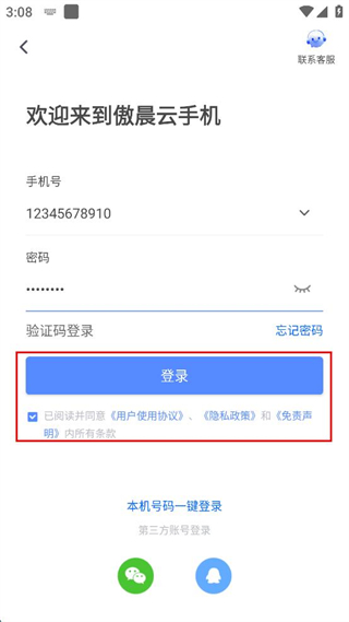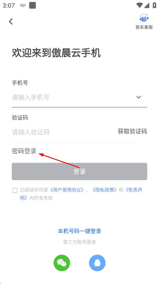 3、在密碼登錄界面,輸入手機號和密碼,勾選同意相關協(xié)議條款。