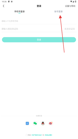 2、進(jìn)入登錄的界面內(nèi),點(diǎn)擊上方賬號(hào)登錄的按鈕。