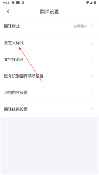 2、在翻譯設置頁面,點擊自定義樣式選項。