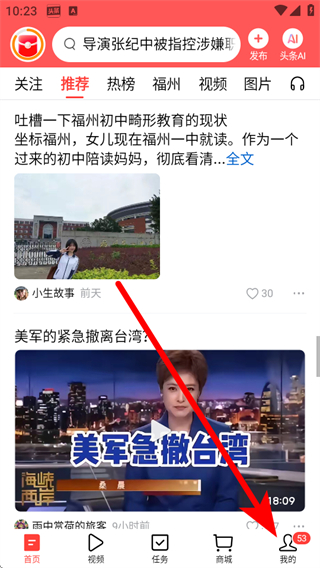 1、首先我們先打開今日頭條APP,點擊右下角我的按鈕。