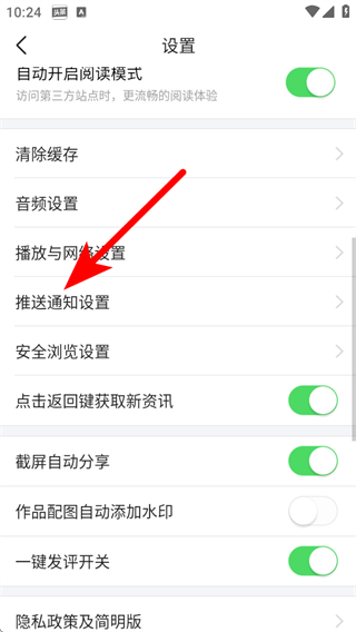 3、在設(shè)置頁面,點擊推送通知設(shè)置,進入推送通知設(shè)置頁面。