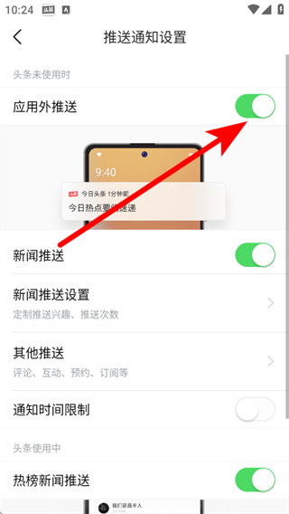 4、在頁面找到應(yīng)用外推送選項,將其開關(guān)關(guān)閉,即可完成關(guān)閉操作。