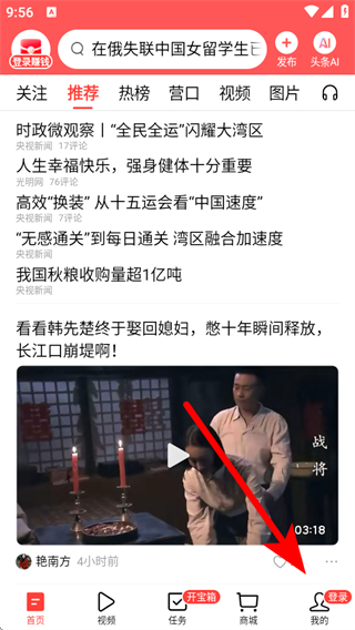 1、打開今日頭條APP,點擊底部未登錄,進入登錄的界面。