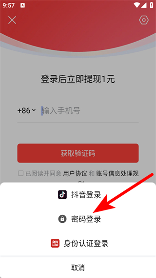 3、在菜單中需要選擇密碼登錄,進入賬號密碼登錄的頁面。