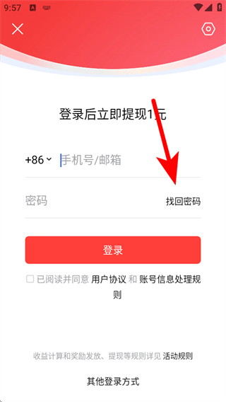 4、在密碼登錄頁面,點擊找回密碼,按照提示完成密碼找回操作。