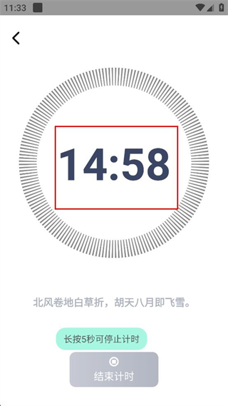 4、進入計時界面,軟件開始倒計時,呈現(xiàn)專注計時狀態(tài)。