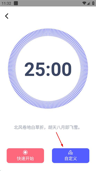2、在計時設(shè)置界面,點擊“自定義”按鈕,打開計時時間選擇列表。