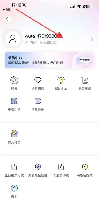 1、打開無他相機(jī)APP,點(diǎn)擊個(gè)人昵稱區(qū)域,進(jìn)入編輯個(gè)人信息頁面。