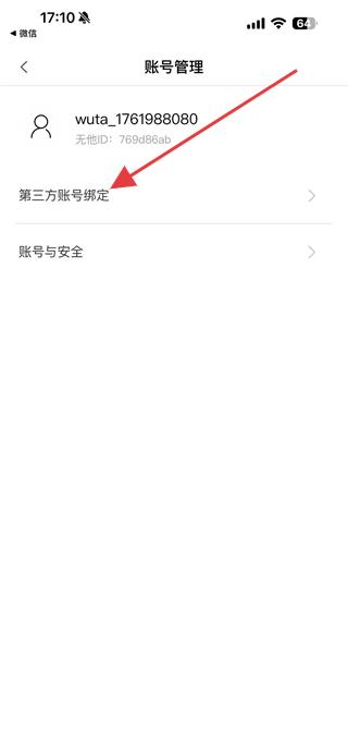 3、在賬號(hào)管理頁面點(diǎn)擊第三方賬號(hào)綁定,進(jìn)入第三方賬號(hào)綁定頁面。