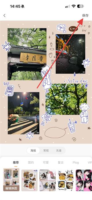 4、樣式選擇完成后點(diǎn)擊保存,即可完成無他相機(jī)的照片拼圖操作。
