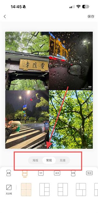3、在拼圖樣式選擇頁面選擇喜歡的拼圖樣式如海報(bào)、常規(guī)、無縫等。