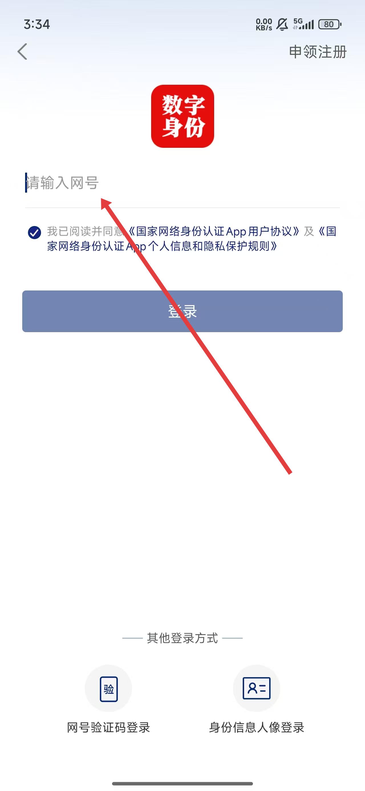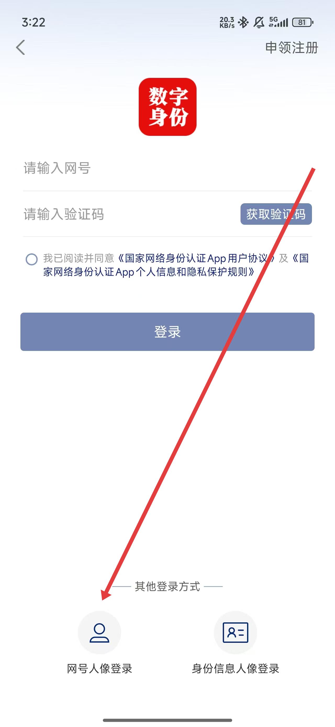 2、在跳轉(zhuǎn)到登錄頁面中,可以點擊網(wǎng)號人像登錄選項,切換登錄方式。