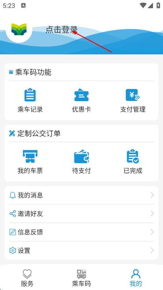 2、在個人頁面上方,點擊“點擊登錄”字樣,進入登錄界面。