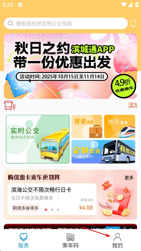 1、打開濱城通APP,在頁面底部找到“我的”選項并點擊,進入個人相關(guān)頁面。