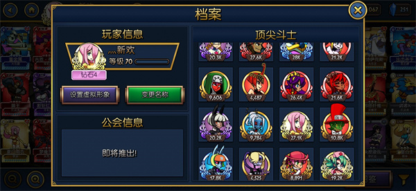 1、游戲中我們可以查看個(gè)人檔案,然后就可以看到自己所擁有的所有斗士,每一個(gè)都是必不可少的;