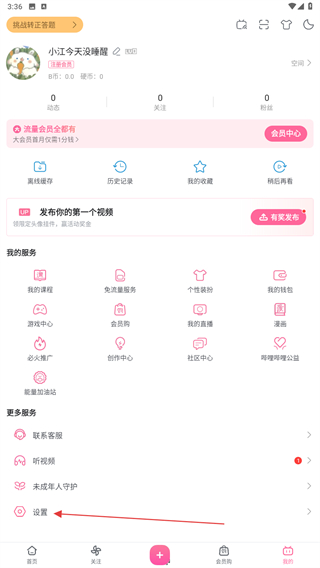 1、啟動嗶哩嗶哩APP,進入個人主頁內(nèi)點擊設(shè)置的功能按鈕。