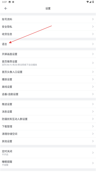 3、進入設(shè)置的頁面內(nèi),找到并點擊語言的按鈕。