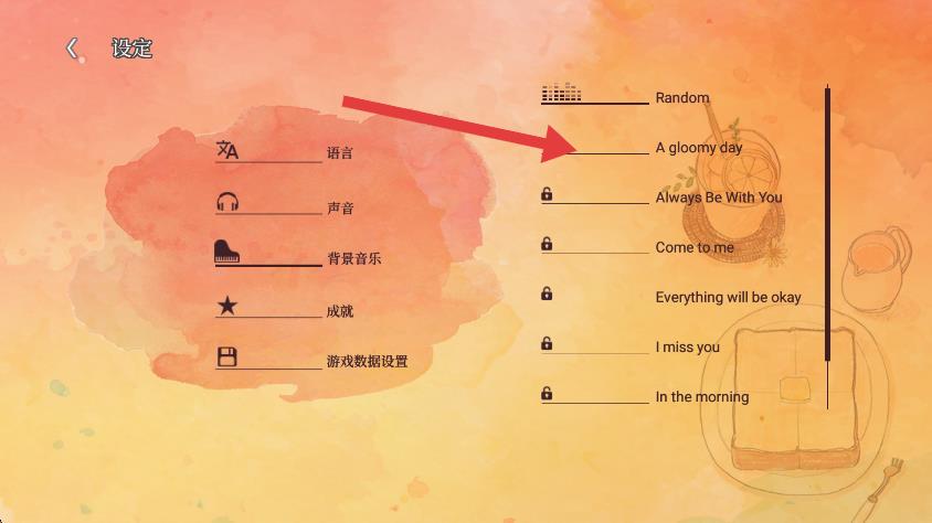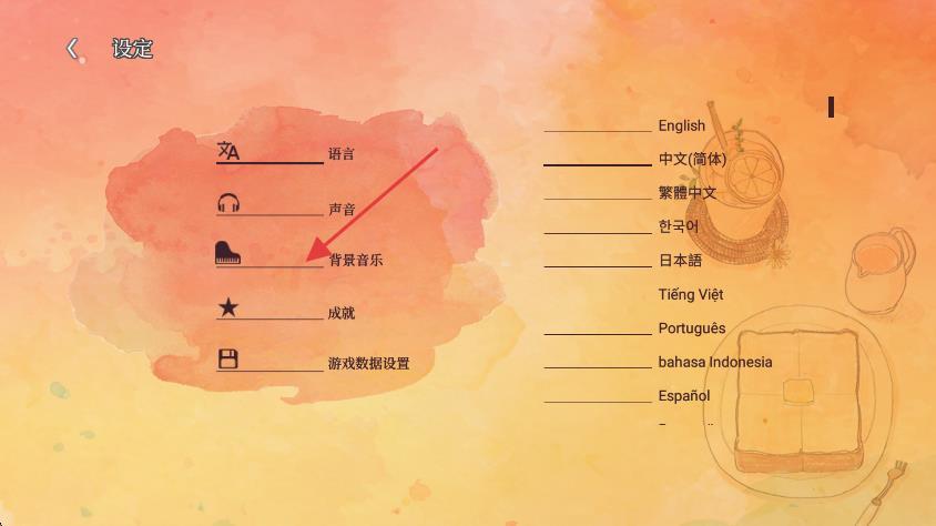 3、在設(shè)定界面,點(diǎn)擊背景音樂(lè)選項(xiàng)。