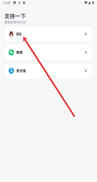 3、支持方式選擇頁面點(diǎn)擊“QQ”,使用QQ的方式進(jìn)行支持。