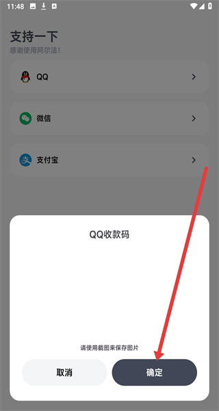 4、在彈出QQ收款碼彈窗后,點(diǎn)擊“確定”,保存下來后續(xù)完成相關(guān)付款操作。