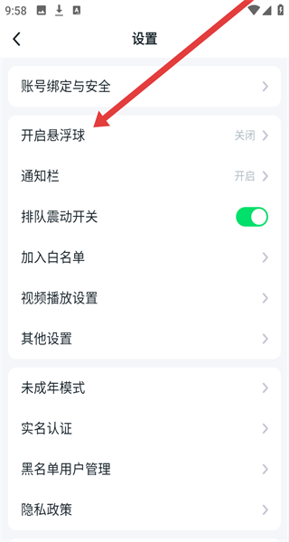 3、設(shè)置頁面點(diǎn)擊“開啟懸浮球”,進(jìn)入顯示在其他應(yīng)用上層設(shè)置頁面。