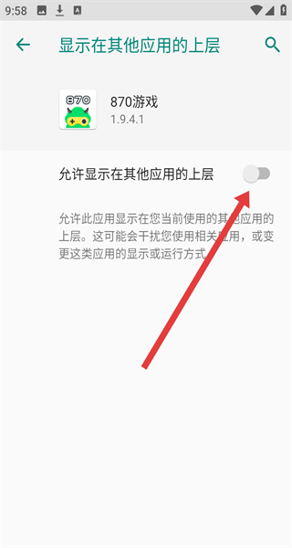 4、打開“允許顯示在其他應(yīng)用的上層”開關(guān),即可開啟懸浮球功能。